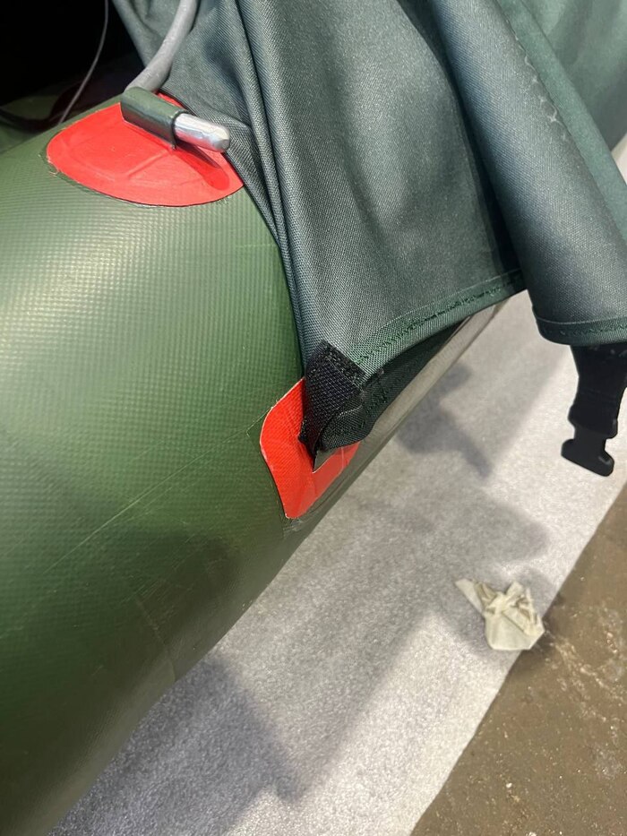 вырез под ручку на липучке. Носовое крепление ремешок на фастексе. Излишек ремешка прячется под фартук