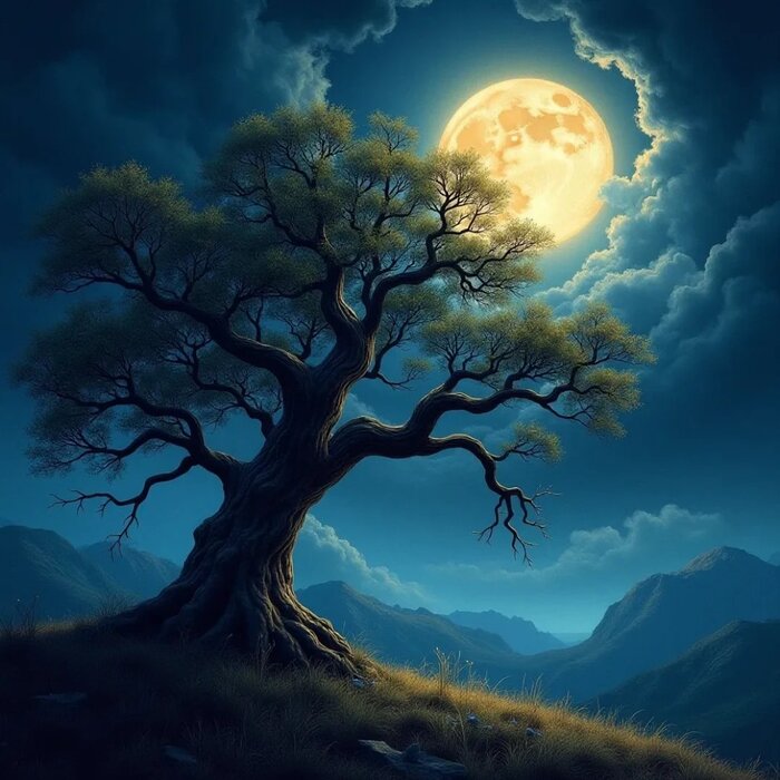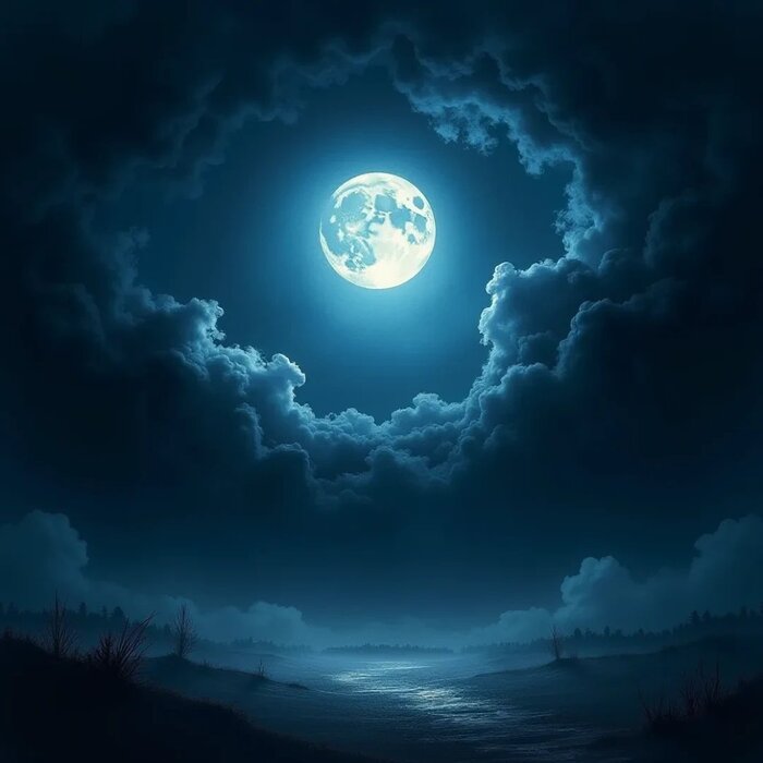 Погрузитесь в мир загадочных ночных пейзажей, где облака и тени сплетаются в волшебный танец.