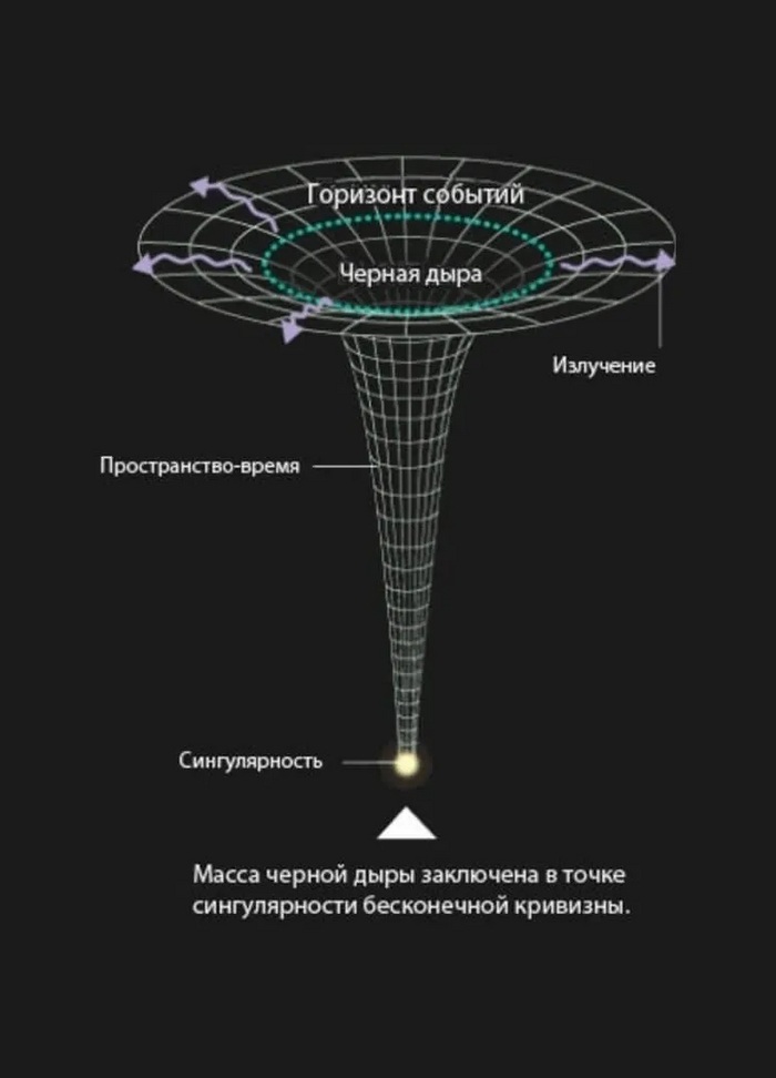 Представьте: Всё, что падает в чёрную дыру, сжимается до нуля. Законы физики, которые мы знаем, больше не применимы. Пространство и время там буквально "ломаются".