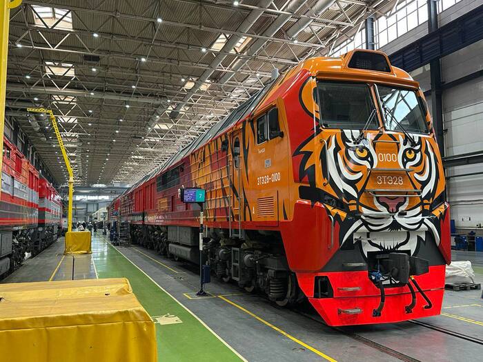 На Брянском машиностроительном заводе идет сборка опытного экземпляра трехсекционного газодизельного тепловоза 3ТЭ30. Конструкция предусматривает мощность двигателя в 3300 киловатт и возможность работы в режиме виртуальной сцепки. Тепловоз разработан с расчетом на долгий межремонтный пробег – каждые 100 тысяч километров, что заметно превосходит показатели аналогичных моделей.