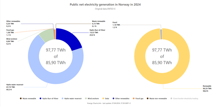 В июле продажи топлива для ДВС упали на 7.2% по данным Норвежского статистического агентства SSB. Помимо снижения потребления нефти, страна практически завершила переход на отопление тепловыми насосами жилого сектора и активно внедряет ТН в промышленности для замены ископаемого газа.