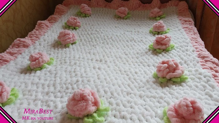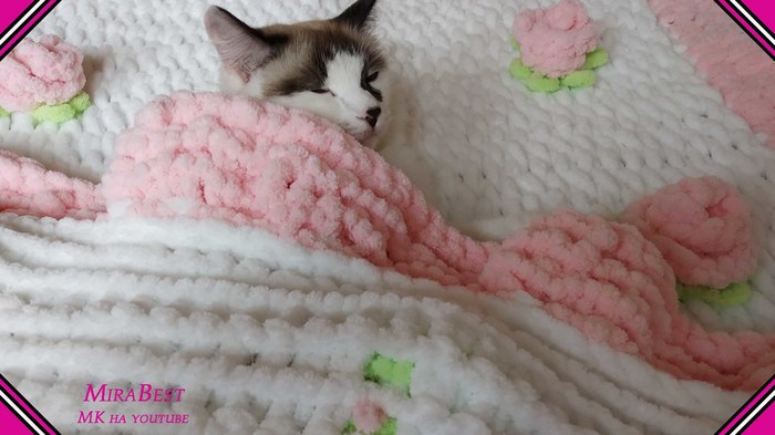 Кто впервые слышит про пряжу Ализе Пуффи - в видео есть МК, как с ней работать: вязать, закрывать петли, присоединять новый моток. Ну и в целом в видео - подробное описание пледика)