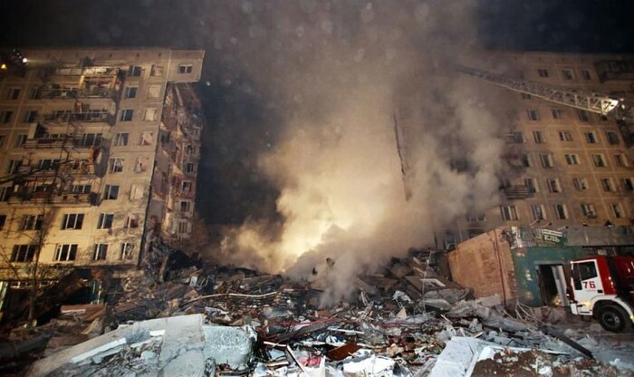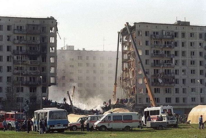 Чеченцы заложили взрывчатку в обычном жилом доме, два подъезда были полностью разрушены. После этого прошлая целая серия терактов в разных жилых домах российских городов — Буйнакск, Волгодонск, Москва.