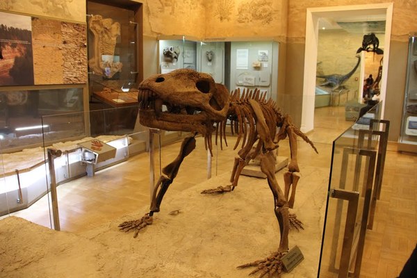 Фотография окаменелости листрозавра, найденной в поле в Южной Африке. Положение тела и отпечатки кожи позволяют предположить, что эти животные умерли в засуху и мумифицировались, прежде чем превратились в окаменелости