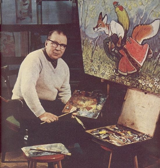 Он иллюстрировал такие всем известные русские народные сказки детства как: колобок, репка, теремок, лиса и журавль, а так же всеми любимые сказки К. Чуковского.