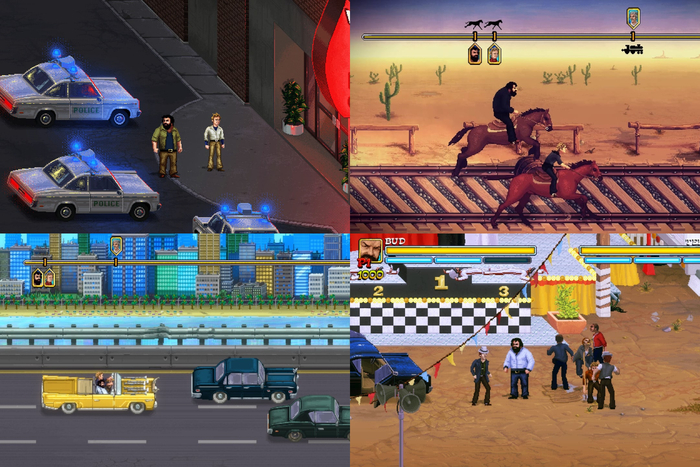 Игра, на создание которой авторов вдохновили знаменитые актеры - Бад Спенсер и Теренс Хилл. Здесь воссоздана атмосфера кинолент 70-х и 80-х годов, где дуэт противостоял целой группе опасных преступников во главе со злобным Капо. События разворачиваются на разных локациях, где происходили действия популярных фильмов с участием актеров. Здесь есть Дикий Запад, Майами и даже тропический остров, где был снят кинофильм "Кто находит друга, тот находит сокровище". Здесь есть мини-игры, к примеру, гоночные соревнования по дюнам на красной баги с желтым верхом - это автомобиль из фильма "Иначе мы рассердимся".