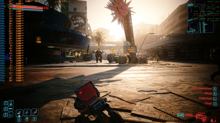 Для тестирования мы будем использовать внутренний бенчмарк игры Cyberpunk 2077 патча версии 2.12 с дополнительной утилитой для отображения параметров MSI Afterburner и возможностями программного обеспечения видеокарт АМД.