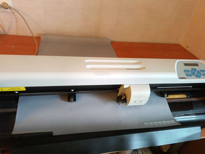 Вставляем этот кусок в режущий плоттер, устанавливаем размеры наклейки и отправляем файл на резку.