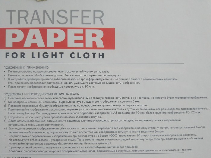 Все остальное по инструкции, но так как у меня лазерный, а не струйный принтер, я обратились в типографию, там еще немного подшаманили, чтобы рисунок выглядел чётче.