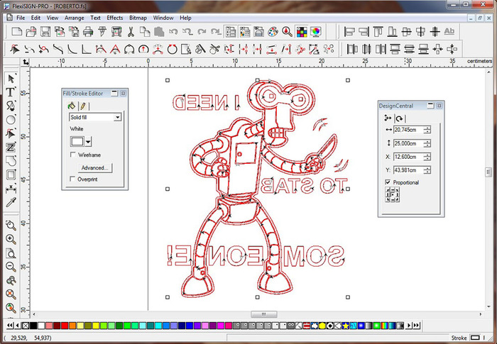 Далее картинку надо перевести в вектор, для этого открываем в каком-нибудь векторном редакторе и трассируем. Добавляем текст, динамику для ножа и внешний контур.