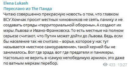 Главнокомандующий Вооружёнными силами Украины Руслан Хомчак призвал органы украинской государственной власти и местного самоуправления не разжигать панические настроения в обществе из-за перемещений российских войск.