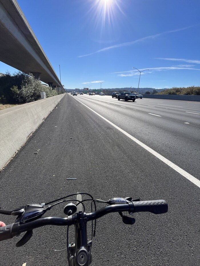 Ехать на встречу потоку, который едет 100+ км удовольствие на большое, довольно быстро понял что план обречен на провал - нашел место где можно было сойти с дороги (по сути я с него спрыгнул и скинул вел) и доехал до ближайшего города, на другой стороне дороги. И о чудо, навигатор очнулся и повел меня по велодорожке до клиники. Опаздывал на 10 минут до назначенного времени, при учете того, что выехал сильно заранее.