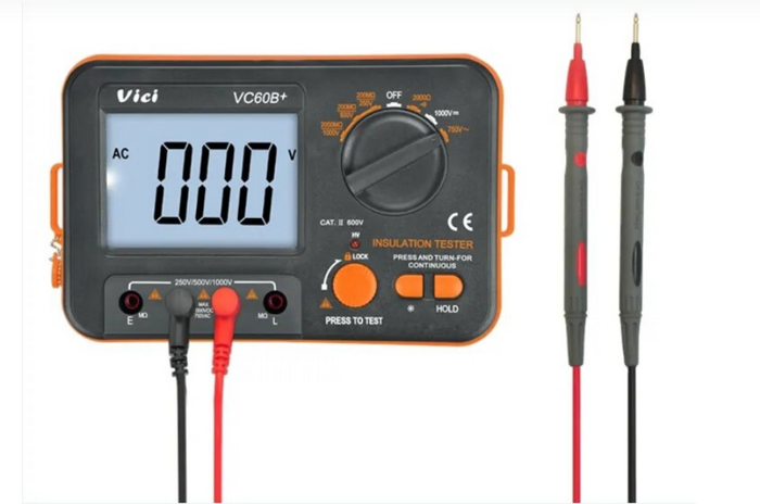 Мегомметр VC60B позволяет определить, насколько эффективно изоляция предотвращает утечку электрического тока, это важно для обнаружения потенциальных проблем с изоляцией и обеспечения безопасности электротехнических устройств.
