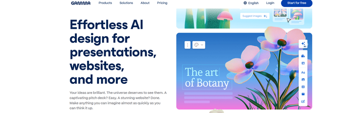 Gamma — идеальный выбор для тех, кто хочет выйти за рамки классических шаблонов. Этот ИИ-инструмент для презентаций помогает визуализировать идеи в формате “storytelling”, делая акцент на вовлечении аудитории и оригинальности подачи.