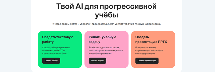 Этот ИИ для генерации презентаций помогает тем, кто хочет, чтобы каждая мысль была доказана и выстроена по принципу “тезис — аргумент — вывод”. Кэмп можно назвать ТОП академическим инструментом в мире ИИ: он не просто оформляет текст, а улучшает его содержание. Подходит для студентов, аспирантов и преподавателей, которым важна логика и связность материала.