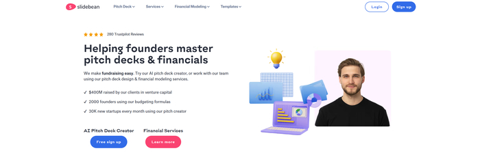 Slidebean стоит выбрать, если вы готовите презентацию для инвесторов. Это ИИ-сервис для бизнес-презентаций, который помогает структурировать идею, оформить цифры и сделать питч запоминающимся и профессиональным.