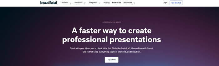 Этот ИИ-генератор презентаций идеально подойдёт тем, кто ценит визуальную аккуратность и не хочет тратить время на ручную верстку. Beautiful.ai автоматически подстраивает дизайн под содержание, создавая эффект “премиум-презентации” даже из базового текста.