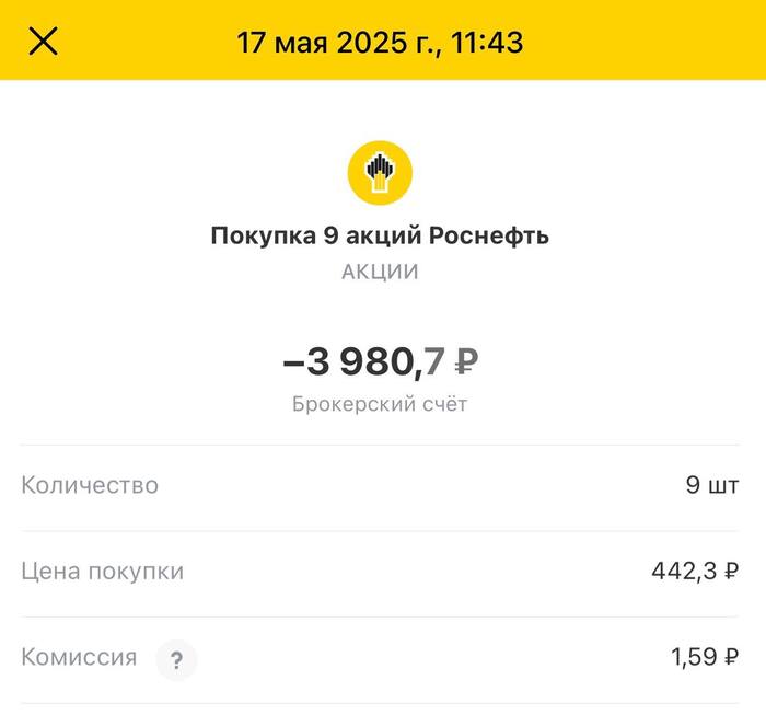 Взяла: 2 Полюс Золото ⛏. 5 Роснефть ⛽️ 1 Лукойл ⛽️. 30 Сбер 🏦. 12 Новатэк 🔋. 20 Газпром ⛽️ 4 Мать и Дитя 🩺. 10 Ростелеком привилегированные 📱
