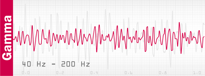 Частота 40 Гц и более. Амплитуда 5—15 мкВ. Одно из бодрствующих состояний мозга. Очень активная умственная работа, концентрация на решении проблем, обостренное восприятие. Тревожная активность. В основном работа правого полушария и логическое мышление. Могут сопровождаться состоянием страха. Характерно также для стадии быстрого сна.