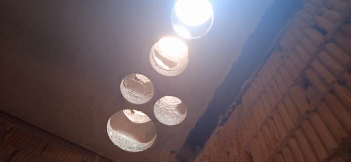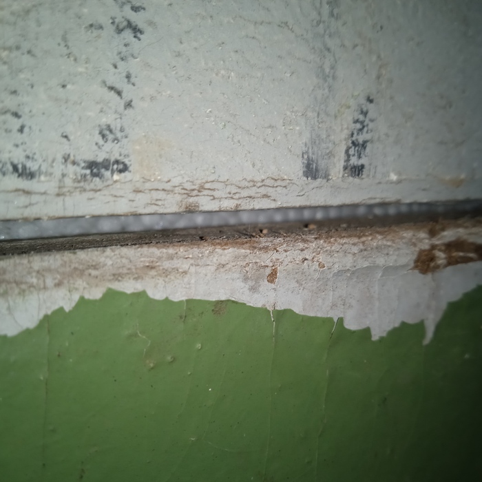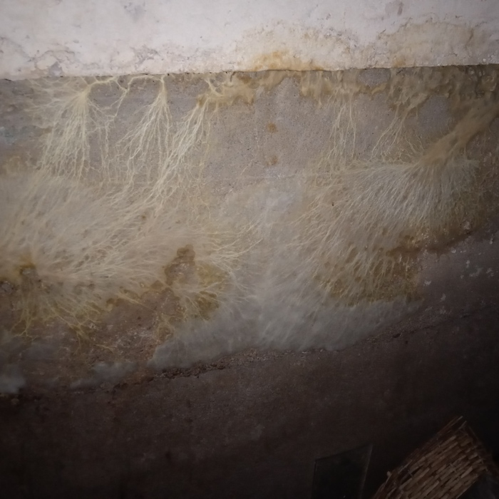 В общем, хороший цокольный этаж - это дорого. Или будет вот такая история с грибком и плесенью по контуру пола. Следы затопления обнаружились в каждом помещении цоколя.