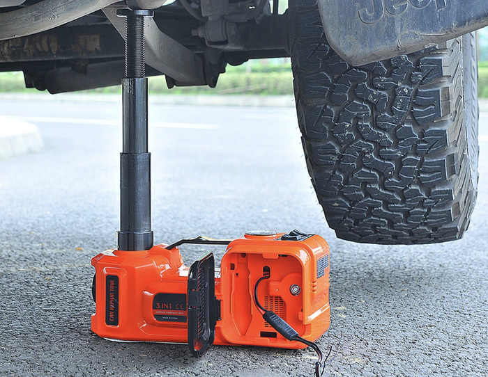 Приспособление позволяет поднимать автомобиль без особых усилий — достаточно подключить питание и нажать кнопку. Конструкция устойчива, даже на неровной земле стоит уверенно. Управление понятное, разберётся любой водитель. Подходит для замены колёс и мелкого ремонта в дороге. Компактность делает перевозку в багажнике удобной.