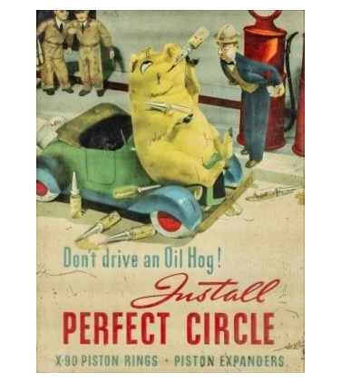 Фактически, представленные здесь поршневые кольца Perfect Circle X-90 были специально разработаны для изношенных двигателей с задирами и неровностью стенок цилиндров. Набор из шести пружин с низким натяжением позволял маслосъемному кольцу адаптироваться к неровностям цилиндра, снижая расход масла, дымление и прорыв картерных газов. Замена поршневых колец в то время была, как замена масла сегодня - практически каждая автомастерская и автосервис регулярно занималась этим. Кстати, компания Perfect Circle Piston Rings, основанная в Хейгерстауне семьёй пионеров автомобильной промышленности Титором и сыновьями, до сих пор существует как подразделение Mahle GmbH.