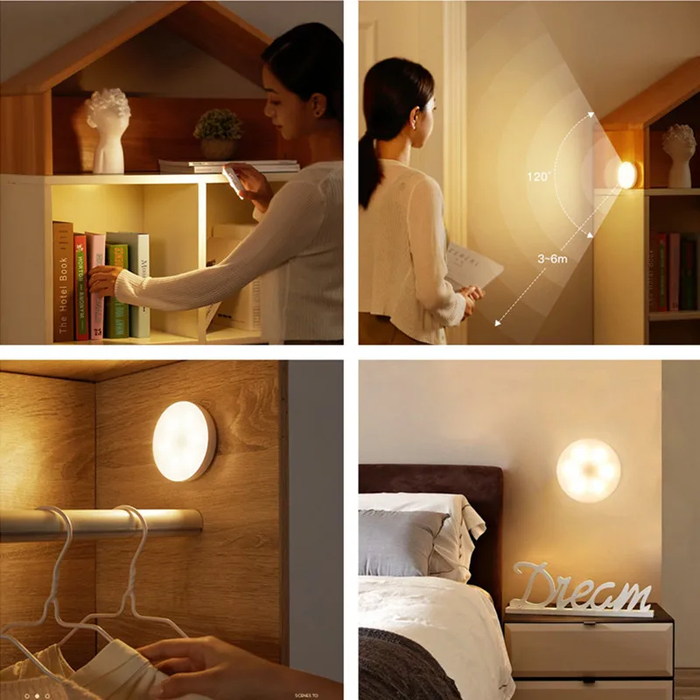 Ночной светильник — это помощник для тех, кто не любит включать верхний свет ночью. Он крепится куда угодно — на шкаф, стену или изголовье кровати с помощью двустороннего скотча, без сверления и проводов.