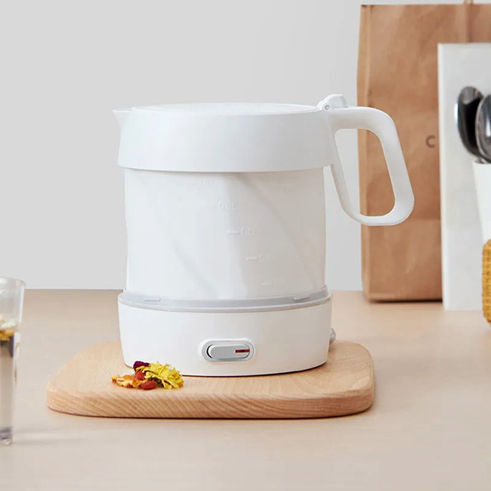 Складной электрический чайник для путешествий от YOUPIN изготовлен из пищевого силикона, который выдерживает температуры кипения и занимает минимум места в сумке или рюкзаке. Объём в один литр достаточен для заваривания чая или кофе на одного-двух человек, а нагревательный элемент из нержавеющей стали 304 работает от сети 110–200 вольт.