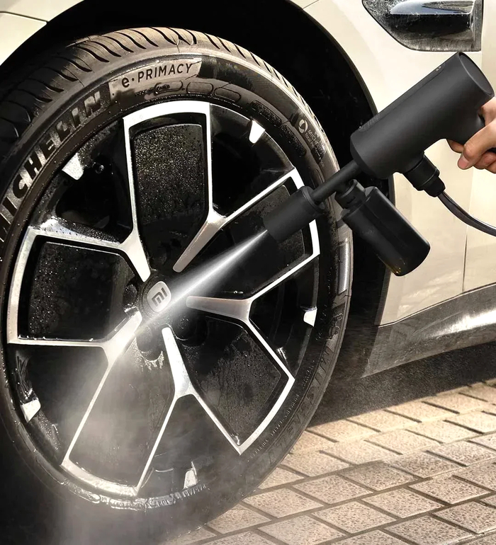 Портативная мойка высокого давления Xiaomi Mijia работает от аккумулятора и не требует подключения к сети. Напор воды достигает нужной силы для удаления грязи и налёта, а бак вмещает достаточно жидкости для полной мойки машины среднего размера.