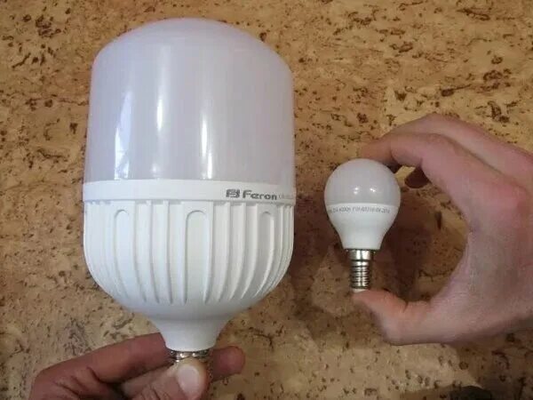 На коробке гордо написано: 22 ватта, холодный свет 4000К, аналог обычной лампы накаливания на 125 Вт. Цоколь Е27. Бренда на лицевой стороне нет - уже интрига.