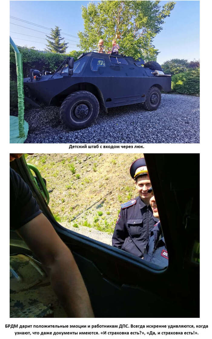 Не будет никакого резюме по теме «как классно владеть БРДМ-ом». Когда что-то интересно и это никому/ничему не причиняет вреда – то почему бы не погрузиться в данный интерес с головой. Что, собственно, и было в моем случае. Естественно, всему свое время и уже так же, как и прошлый хозяин могу сказать, что наигрался. Машина должна ездить, дарить эмоции, выполнять возложенные задачи (развлекать/работать/обучать/патриотически воспитывать), но никак не простаивать. Сейчас я вижу, что дети накатались, да и я, получив опыт эксплуатации БРДМ-а, естественно, не беру его ежедневно, хоть он уже и не ломается.