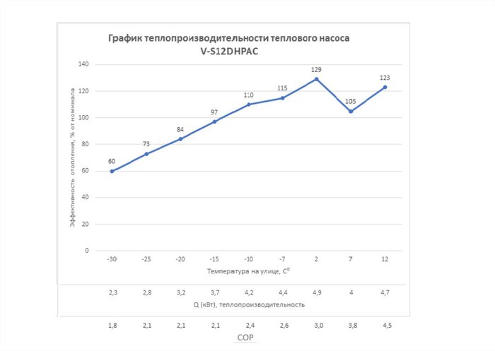Получились вполне себе неплохие результаты, COP(кпд) на должном уровне. Плюсом, надежность - на -35°C кондиционер продолжал работать.