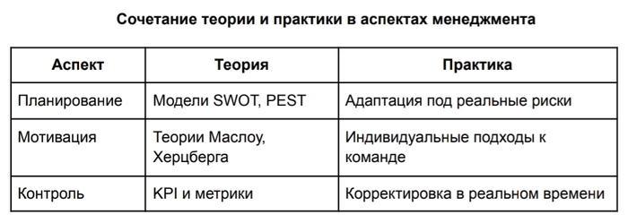 Как менеджмент сочетает теорию и практику