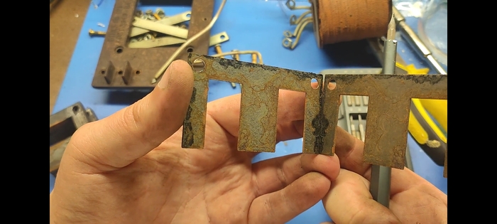 Теперь займёмся трансформаторами, ибо они тоже все сгнили. Разберём, зачистим и перелакируем заново все пластины сердечника, перемотаем обмотки на заново напечатанные на 3D принтере каркасы и соберём всё взад: