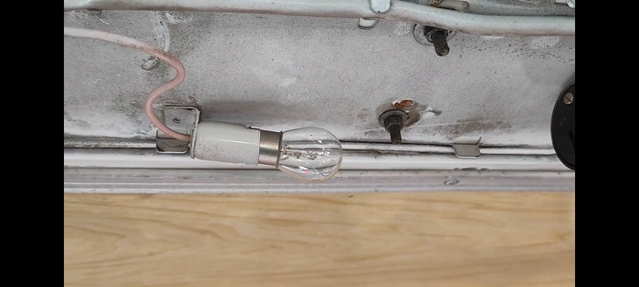 Такой светильник салона этого автобуса внутри: люминисцентная трубка и две небольшие лампы накаливания (в оригинале на 6 свечей, что примерно равно 6 ваттам)