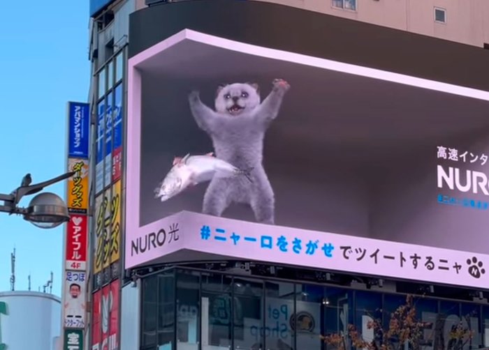 Кошки остаются всеобщими любимцами в Японии. С большей вероятностью люди, оказавшиеся в районе «Синдзуку», увидят на билбордах именно этого зверя, причем это не обязательно будет знакомая нам трехцветная кошка – недавно новым жителем рекламных экранов стал котенок, представляющий компанию Sony|NURO 光.