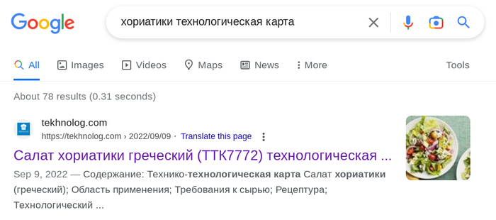 Ура! Первым же результатом нам попалась нужная технологическая карта. Идём читать.