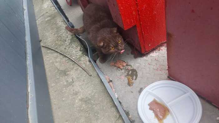 Найдена кошка возле кожуховского моста по адресу проспект Андропова дом 1. (Рядом метро кожуховская и технопарк) Кошка шоколадного окраса с еле заметными полосками. Глаза янтарные. Вислоухая. Шерсть мягкая и чистая. Кошка выглядит породистой и домашней. Боится людей и звуков. Крайне редко подходит дать себя погладить. Агрессии не проявляет.