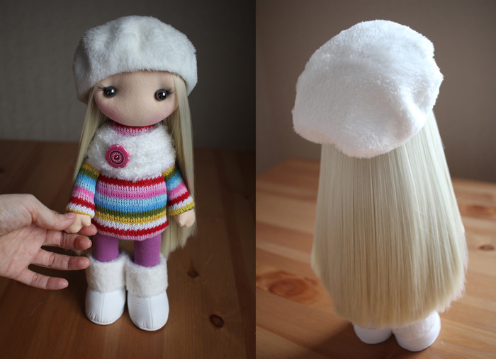 Натуральные ткани. Трикотаж, хлопок, шерсть. Волосы - кукольные трессы. Куколка - 25см.