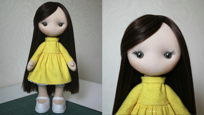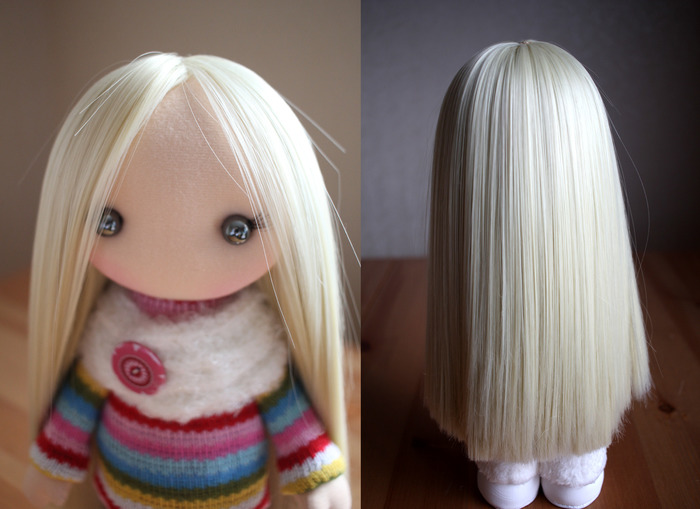 Все материалы одежды из натуральных тканей: хлопок, трикотаж. Волосы - кукольные трессы.