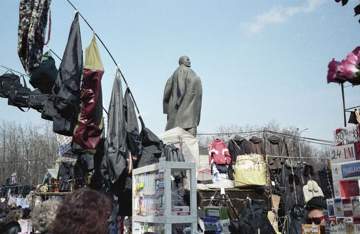 Уличный продавец парфюмерии на стихийном рынке Саратова, 1995 год.