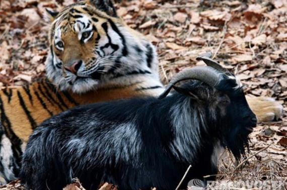 На сайте Приморского сафари-парка появилось сообщение: после ссоры, которая произошла между друзьями в последних числах января, козел Тимур и тигр Амур больше не будут жить вместе. Отныне они смогут видеть друг друга и общаться только через решетку.