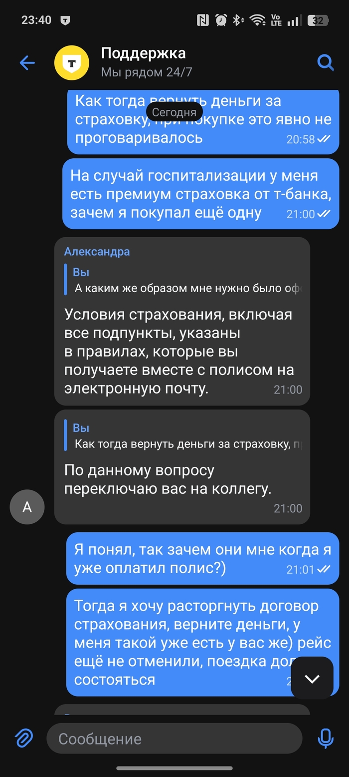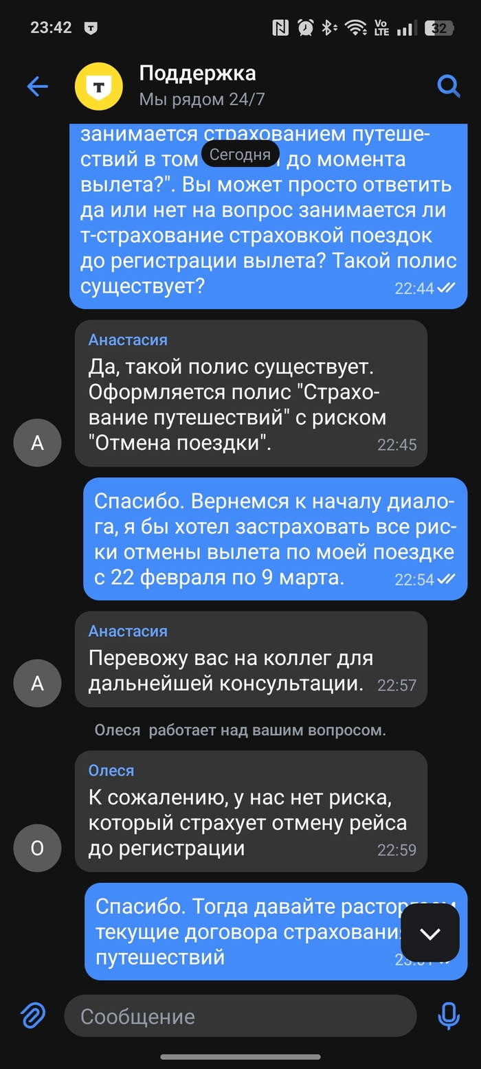 Подобное поведение сотрудников подрывает доверие к АО «T-Страхование» и подтверждает ненадёжность компании, что вынудило меня вывести практически все активы (вклады, инвестиции) из Т-Банка.