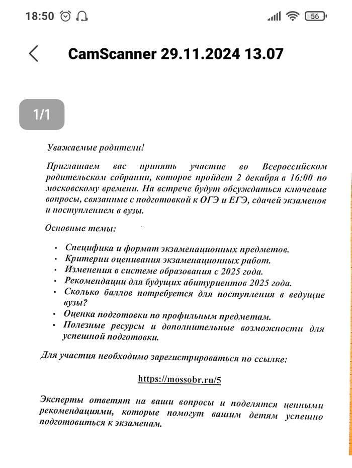 В школьный чат нашего 8 класса вчера учитель отправила приглашение принять участие во Всероссийском родительском собрании, где будут обсуждаться вопросы, связанные с подготовкой к ОГЭ и ЕГЭ, поступлением на бюджет и пр.