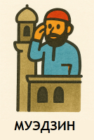 Муэдзи́н Человек, совершающий призыв к молитве пять раз в день (азан). Приблизительный аналог – звонарь, глашатай.