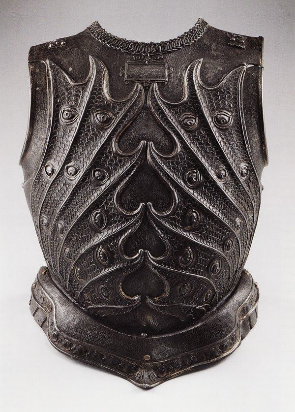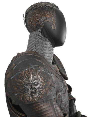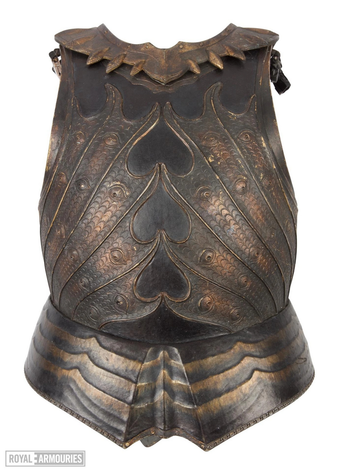 Но доспех Лорда-Маршала сделан по мотивам реально существовавшего, который создал миланский мастер Филиппо Негроли в 1532-1535 гг. для Гвидобальдо II делла Ровере, герцога Урбино. Несколько фрагментов "драконьего доспеха" хранятся в Метрополитен-музее, Нью-Йорк (правый наплечник),