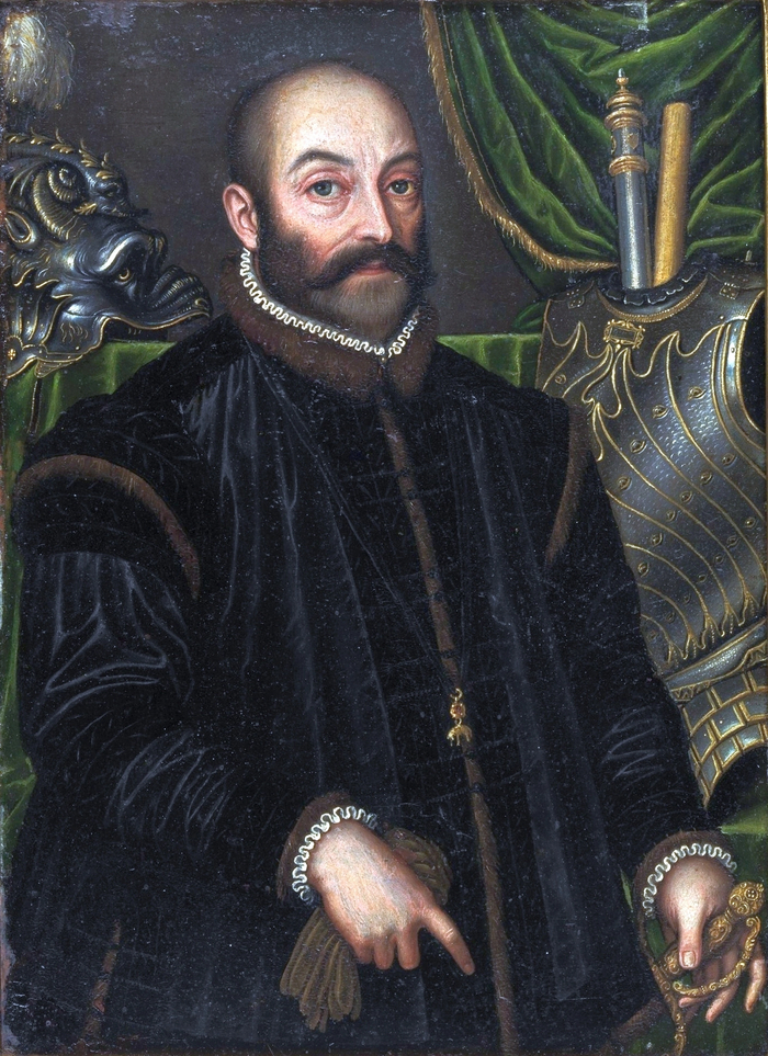 А вот сам герцог Урбино на портрете неизвестного художника, около 1585 г. Справа и слева от герцога мы можем видеть части того самого доспеха.