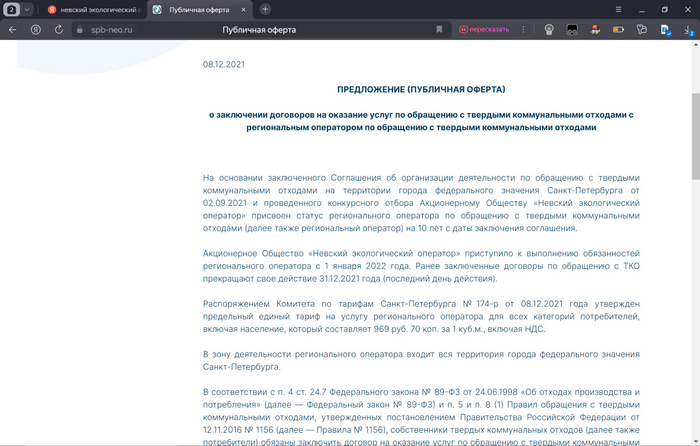 А я знать не знаю кто это. Гугл мне в помощь – и оказывается это региональный оператор по обращению с твердыми коммунальными отходами.