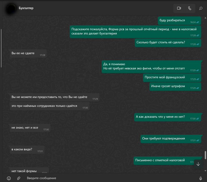 Бух.учёт у меня ведет компания на аутсорсе. Я написала своему бухгалтеру...