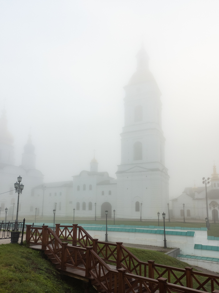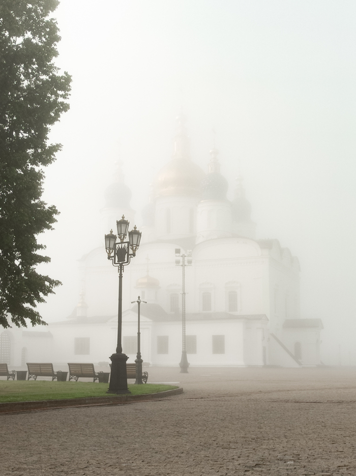 Увидел с утра сильный туман, фотоаппарат в руки и поехал в Тобольский кремль, но в спешке забыл вставить карту памяти! Пришлось снимать на свой старенький телефон. Нет худа без добра, вспомнил как фотографировать на мобильник))